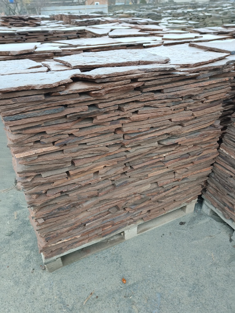 Плитняк песчаник красный для облицовки цоколя, отмостки 20-25 мм