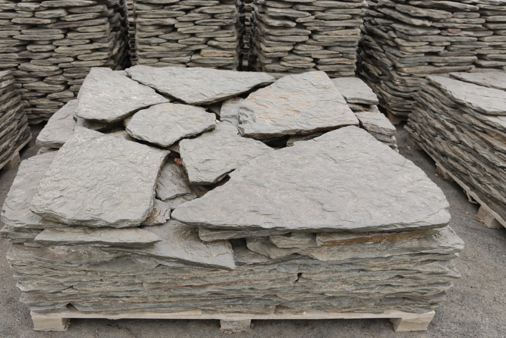 Плитняк песчаник дракон серо-зелёный галтованный для мощения дорожек 40-50 мм